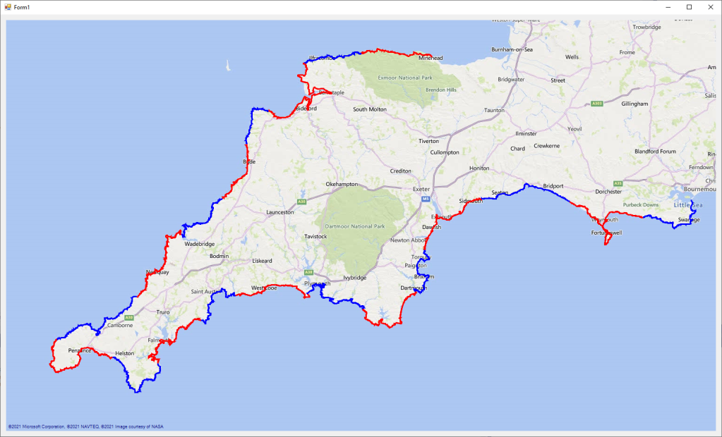 I’ve spent a while looking through a mix of various SWCP GPS tracks from various sources and now have a fairly complete single track which has the complete route.