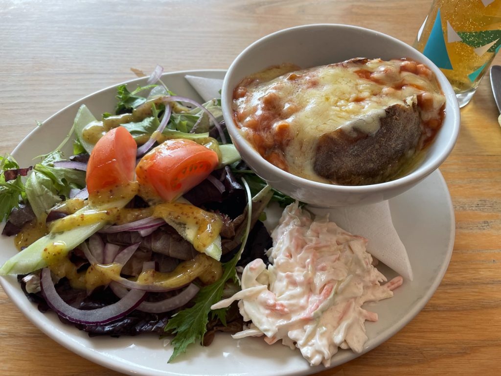 Lunch time (well, 4pm!), saw me grabbing a nice healthy jacket potato smothered in cheese and beans from the Captains Table restaurant. And I took the opportunity to sneak in a Korev too!